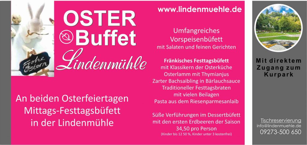 Nur ein Schritt und Sie befinden sich im versteckten Paradies von Bad Berneck. Im Tal der Ölschnitz liegt der traumhafte Jugendstilpark, der einst die Kurgäste zum Flanieren einlud. Sie sind nun Gast der Lindenmühle und nutzen die hoteleigene Brücke, um in die Perle der Stadt zu gelangen. Einfache Spazierwege und anspruchsvolle Wanderwege laufen an diesem Punkt zusammen.